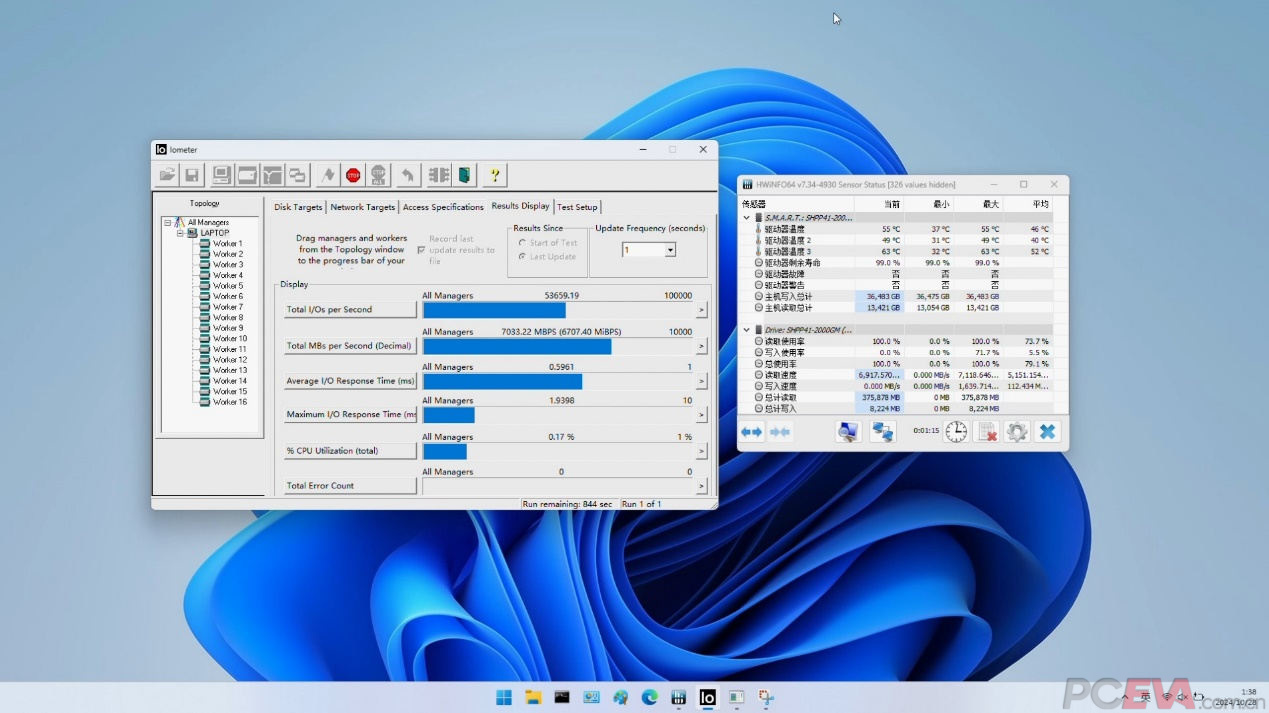 使用IOMeter执行1MB QD8顺序读取,HWiNFO64每秒记录温度和写入速度。