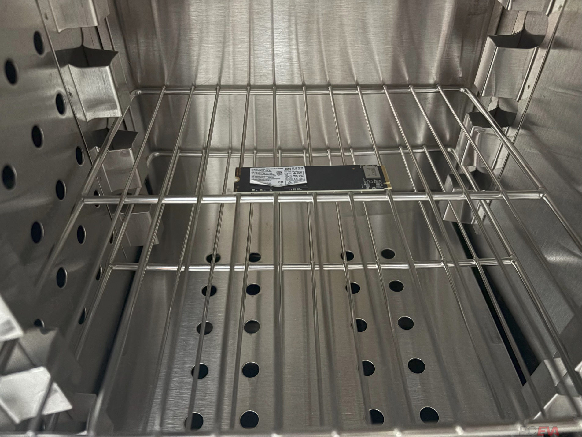数据也有保质期。根据JEDEC规范,消费级SSD在标称写入耐久度用完的情况下应该具备数据断电保存一年不出错的能力。可以通过高温烘烤来加快数据保持测试的进度。 测试开始前我们使用单个2GB的文件复制填充满全盘。这些文件将起到两个作用,一是通过MD5校验信息确认数据完整性,二是通过测试“旧文件”的读取掉速情况。在高温烘烤前记录测试文件的MD5信息: 放入恒温箱内准备进行高温烘烤: 经过等效1年断电保存的高温烘烤后。再次验证MD5信息,所有数据均未出错。400TB写入磨损后的断电1年数据保存测试通过。 |