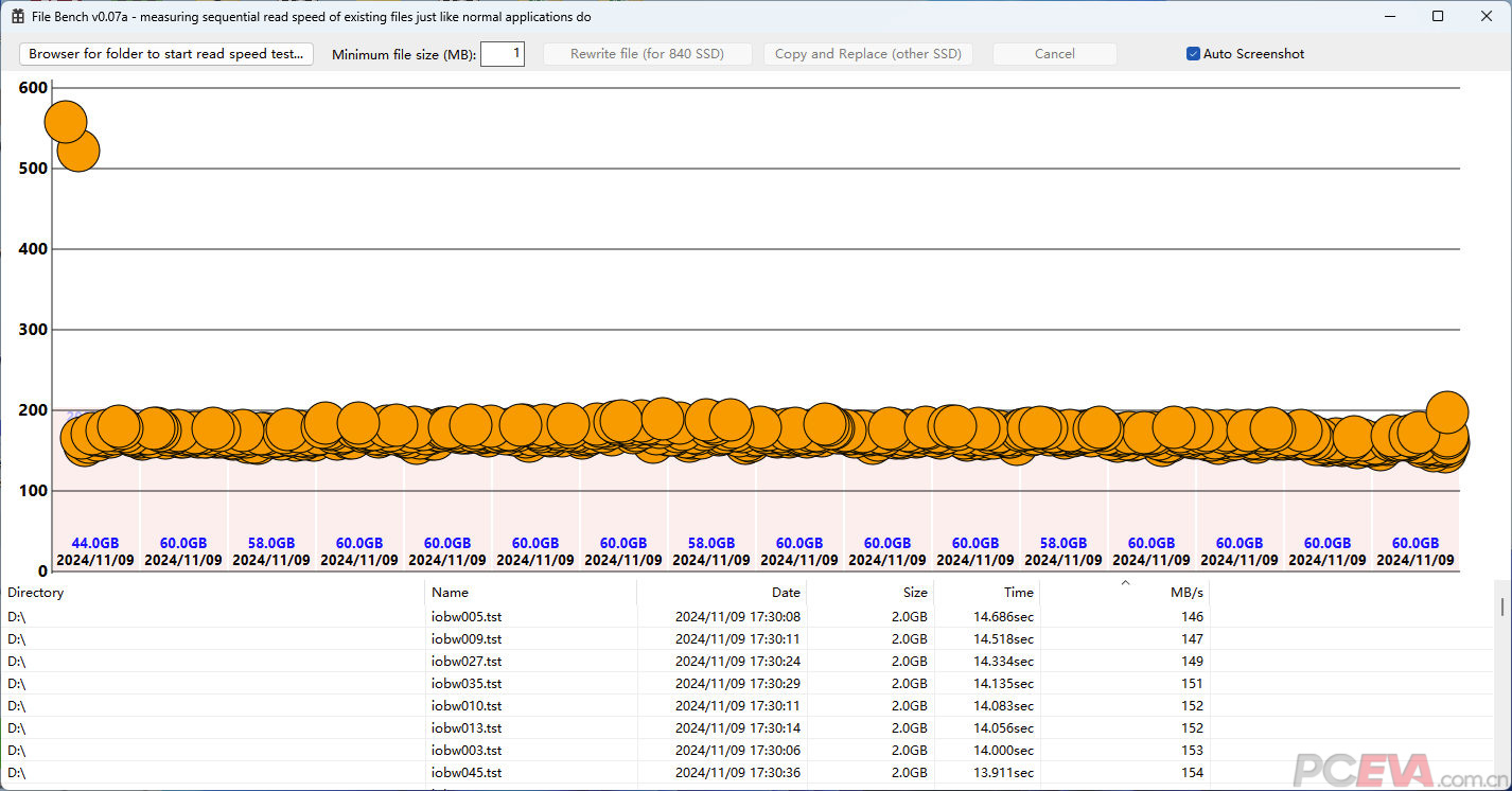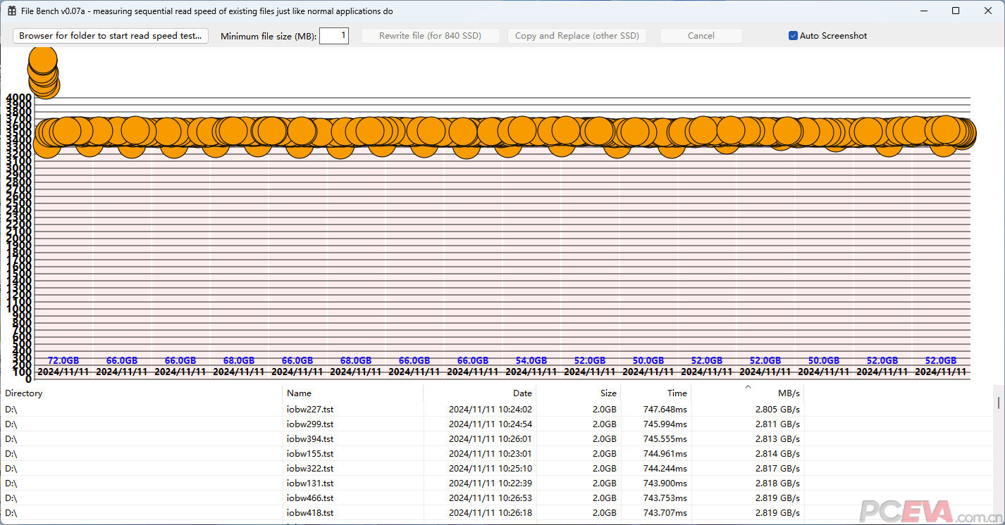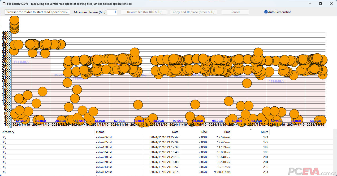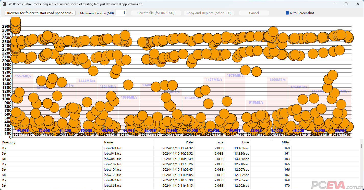 早在TLC SSD时期人们就发现,一些内容长期未发生变化的“旧文件”的读取速度会随着时间流逝而逐步衰减。常规的测速软件只能测试刚刚写入数据的读取性能,所以读取掉速问题较为隐蔽,但却会对日常使用体验产生实实在在的负面影响。在做数据保持测试时,我们顺便进行了读取掉速测试。高温烘烤前新写入数据的读取测试结果如下,平均读取速度3034MB/s。(由于读取区块大小的差异,此处读取速度和CrystalDiskMark测出的顺序读取速度不同) 在主机写入量超过标称值33%的情况下,等效1年时间的旧文件读取掉速确实很明显:平均读取速度下降到168MB/s。好消息是虽然读取速度慢,但测试过程中没有出现卡住不动的情况。 通电闲置4个小时后,进行第二次读取测速,速度已经出现明显回升,平均读取速度253MB/s。说明SSD已经在通过数据搬移重写等方式恢复“旧文件”读取性能。 此后我们又每次间隔数小时重复进行一次读取测速,可以看到读取性能恢复势头良好: 到烘烤后第七次读取测速时,盘内文件的读取性能已经基本恢复到烘烤前的水平: 这个测试说明长江存储PC41Q有能力发现并处理发生读取掉速的“旧文件”。 正常使用中通常不会遇到这种闪存磨损程度很高而又连续一年不开机的情况,PC41Q无需像测试中这样反复读取和等待,而是可以从源头上避免读取掉速问题的发生。 在完成以上测试后,这块长江存储PC41Q的最终SMART健康信息如下。目前SSD依然处于可用状态,无任何故障。 |