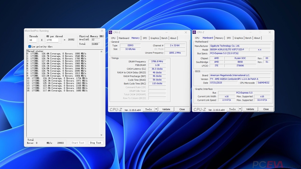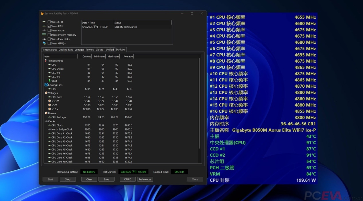 ![]() 最后来测试一下B850M雕妹的供电表现,用AIDA64 FPU烧机30分钟,锐龙9 9950X3D的功耗稳定在200W左右,CCD1的频率大约在4.6GHz-4.7GHz左右,CCD2的频率大约在4.8GHz-4.9GHz左右,处理器温度已经触及上限,这时供电温度大约84度左右,仍在安全范围内且有一定余量。 ![]() 热成像仪扫描的热量分布显示,最热点在输出电容的走线部分,温度大约有86度,整体的供电温度都在安全范围内。 ![]() 我们也测试了这张主板的内存超频性能,还是刚刚那套DDR5-6000MHz CL30,拉到DDR5-7600MHz CL36过MT很轻松。 |