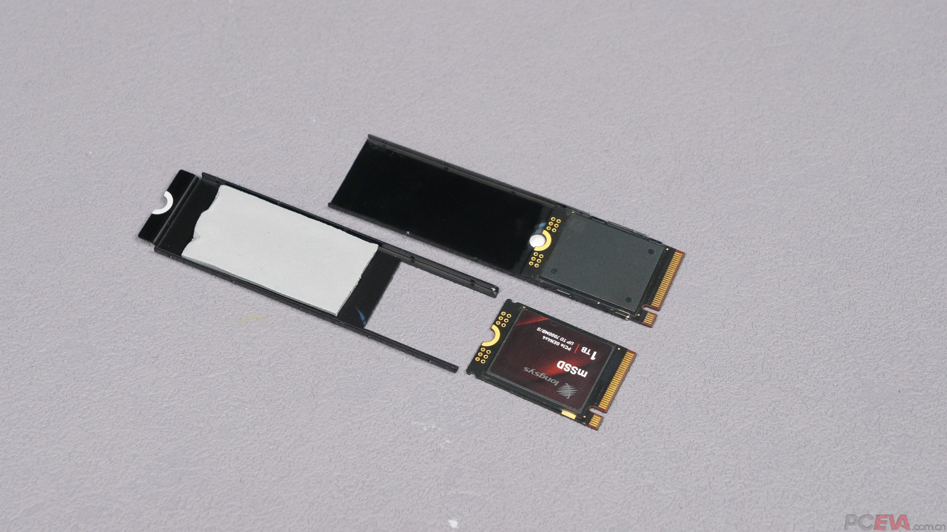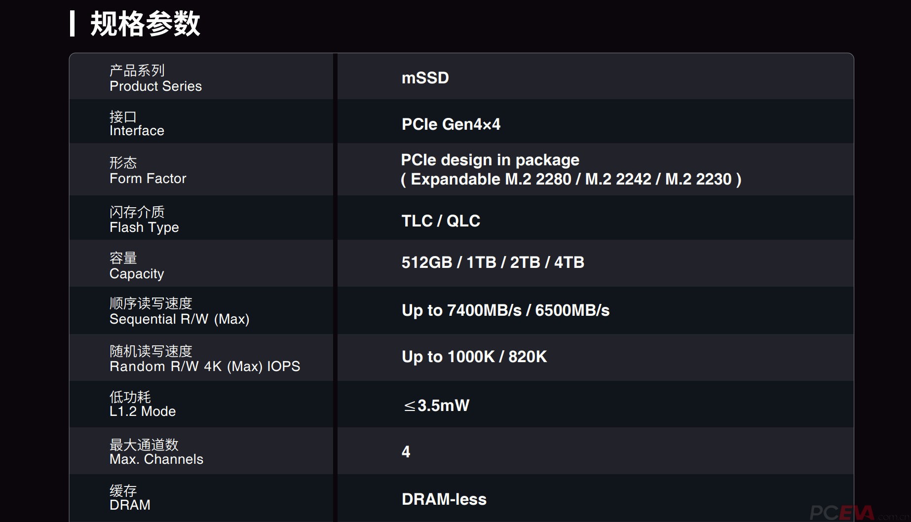 mSSD使用集成封装设计,将主控、闪存以及PMIC电源管理芯片及其周边电路元件全部整合到一起,是业内首款采用此类集成封装的mSSD产品。根据江波龙公开的信息,mSSD相比传统模式减少50%生产环节,同时将DPPM(每百万单位中的缺陷品数量)降低了10倍,从源头上提升产品质量,减少数据损坏的风险。除了制造业角度的优势之外,集成式封装还具有另一层好处:它将NVMe SSD外露的各种芯片像SATA SSD那样封闭起来,阻隔了灰尘,可以降低长期使用过程中的故障率。 以尺寸最小的2030(宽度收窄,兼容M.2 2230)为基础,mSSD在容量上可以提供从512GB到4TB多种选项,能够方便地扩展出M.2 2230、M.2 2242和M.2 2280多种规格。相当于把尺寸仅为20×30mm的mSSD当成统一介质,再多点开花,按需变形,以拓展出更多的形态,适配不同的应用场景。甚至可通过不同的固件方案,延展出如PSSD等其他类型的存储产品。 而且这种扩展不仅仅是单纯的尺寸变化,它还兼具散热片的作用,拓展卡采用了高导热铝合金散热结构,以及同芯片表面直接贴合的石墨烯贴片和强导热硅胶组成,能够显著增强mSSD的散热能力。 mSSD采用了四通道DRAMLess设计,具备PCIe 4.0 x4满速读取能力,4K随机读写能力达到1000K/820K IOPS。本次我们评测的江波龙mSSD样品是2030(兼容M.2 2230)和M.2 2280规格,1TB容量。 |