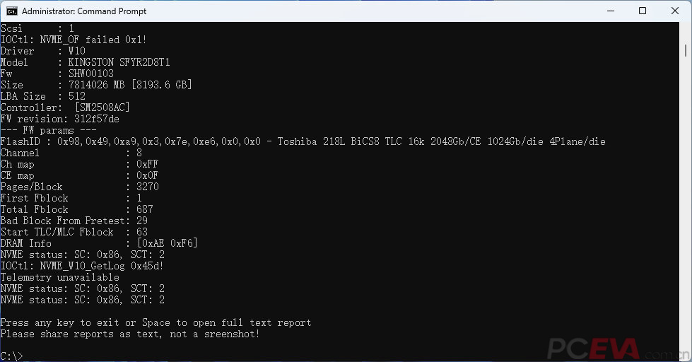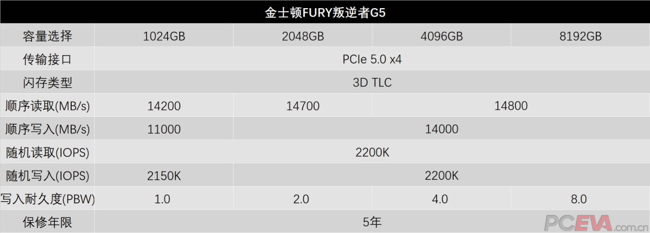今天我们要评测的是一款京东售价15999元的“黄金版”超旗舰固态硬盘:Kingston FURY Renegade G5 8TB(以下称为叛逆者G5)。按照它9.2克的重量来计算,每克价值1739元,足显金贵! 我们把结论放到文章开头:叛逆者G5含金量十足,自身价值对得起这样的售价。这款“黄金版”SSD到底值不值,大家可以看完全文后再下结论。 作为大容量版本,叛逆者G5 8TB使用了双面PCB布局,对于台式机来说毫无压力。笔记本电脑安装前需要提前了解一下M.2插槽能否支持安装双面SSD。 撕开标签可以看到,叛逆者G5 8TB继续采用了台积电6纳米工艺制造的慧荣SM2508主控,8通道DRAMBased设计。和之前评测的4TB版本略有不同的是,DRAM缓存放到了PCB背面。 由于PCB空间有限,无法同时容纳主控、DRAM缓存和4颗闪存颗粒。叛逆者G5 8TB被做成了双面PCB形式。 根据FlashID识别结果,我们本次评测的叛逆者G5 8TB使用了铠侠BiCS8闪存,单die容量1Tb。不同批次产品可能会有差异。 铠侠BiCS8共有218层堆叠,并首次使用了类似长江存储Xtacking晶栈的CBA(CMOS直接键合到阵列)技术。在这一技术的帮助下,铠侠BiCS8闪存能够提供3600MT/s的接口速度,充分发挥了慧荣SM2508主控的能力。 加上新推出的8TB版本,叛逆者G5目前提供1TB、2TB、4TB和8TB四种容量选项。官方的顺序读写性能基于AMD锐龙X670E平台,随机读写性能指标基于英特尔Z890平台。这是因为当前只有AMD锐龙平台能够支持512字节MPS,英特尔酷睿平台的顺序读写速度会因256字节MPS有一定限制,但一般来说英特尔酷睿平台的IO延迟比AMD更低,有利于SSD随机读写性能的发挥。PCEVA本次使用英特尔Z790平台进行测试。 作为PCIe 5.0接口超旗舰产品,叛逆者G5不仅拥有卓越的性能,同时在耐用性上也是冠绝群雄。本次评测的8TB型号具备8PBW写入耐久度指标,相当于在5年保修期内每天可写入4384GB数据。如果按典型的家用写入负荷来计算,用户几乎不可能用完叛逆者G5的写入耐久度,称之为传家宝也不为过。 |
