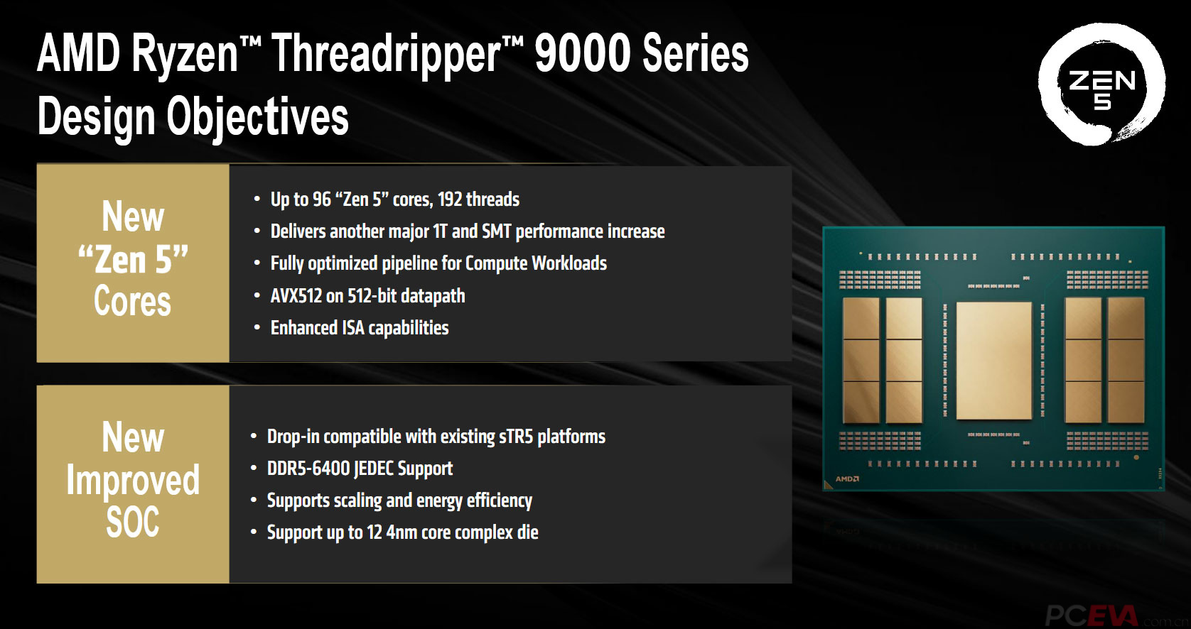 ![]() ![]() ThreadRipper线程撕裂者9000系列处理器采用了全新的Zen 5架构,最高支持96核心192线程,其特性与我们熟悉的锐龙9000桌面处理器类似,带来了16%的IPC性能提升,进而提高了单线程以及多线程性能,全新的前端和分支预测管道提高了运算吞吐量,完整的AVX 512浮点单元及其512-bit路径能适应更高、更宽的工作负载和指令,这对于科学类和工程类应用尤其重要。 ![]() 我们在锐龙9000系列处理器的评测中,详细解析过Zen 5架构的设计,这里就不过多重复了,总结就是以下几项架构改革,其中包括: 1. 全新的前端设计和分支预测 2. 更宽的执行窗口和重新设计的指令提取、译码、分发管道 3. Zen 5架构的每个时钟周期可执行更多指令 4. 因微操缓存和寄存器带宽也对应增大 更能适应密集型工作负载 5. 完整的AVX 512浮点单元及其512-bit路径,以及 AVX512/VNNI指令集的支持 ![]() 线程撕裂者PRO和线程撕裂者采用了不同的CCD核心配置,线程撕裂者PRO共有12个CCD,每个CCD包含8个核心,最大支持96核192线程,内存支持DDR5-6400MHz RDIMM ECC内存,峰值理论带宽约为410GB/s,同时也可以通过EXPO支持DDR5 7000MT/s以上的内存频率,可提供144条PCIe通道,其中128条为可用PCIe 5.0通道,TDP则是350W。 ![]() 线程撕裂者共有8个CCD,每个CCD包含8个核心,最大支持64核128线程,内存支持DDR5-6400MHz RDIMM ECC内存,峰值理论带宽约为204GB/s,同时也可以通过EXPO支持DDR5 7000MT/s以上的内存频率,可提供92条PCIe通道,其中80条为可用PCIe 5.0通道,TDP则是350W。 |