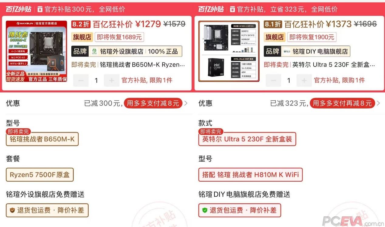 ![]() 总的来说,锐龙5 7500F的游戏性能比Ultra 5 230F高,尤其是电竞游戏更为出色,最高领先幅度甚至能达到39%,综合领先幅度也有12%,这样的表现与AMD一以贯之的纯大核策略息息相关,锐龙5 7500F虽是两年前的产品,但凭借强核+强架构的设计,面对酷睿Ultra 5 230F依然取得了压倒性的胜绩。 ![]() 最后聊一下价格和平台,锐龙5 7500F盒装售价989元,酷睿Ultra 5 230F盒装售价1059元,单算处理器价格,7500F比230F便宜70元,并且AM5主板也更便宜,同样是铭瑄的挑战者,1279元可以买到7500F+挑战者B650M-K,1373元只能买到230F+挑战者H810M-K,前者价格不但更便宜,主板定位也略高一些。同时,AM5接口可以用到2027年,兼容未来的高性能CPU,新年装机当然是希望使用寿命能长一些,谁都不希望今年装的电脑过两年要全部换掉,锐龙5 7500F+B650再用2年也依然是够用的,且还有着广阔的升级战未来空间,而H810大概率明年就得换平台了。两相对比,不管是从性能输出考虑,还是平台售价或是未来升级成本考虑,锐龙5 7500F+B650都是更佳的选择。 |