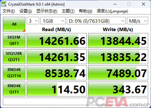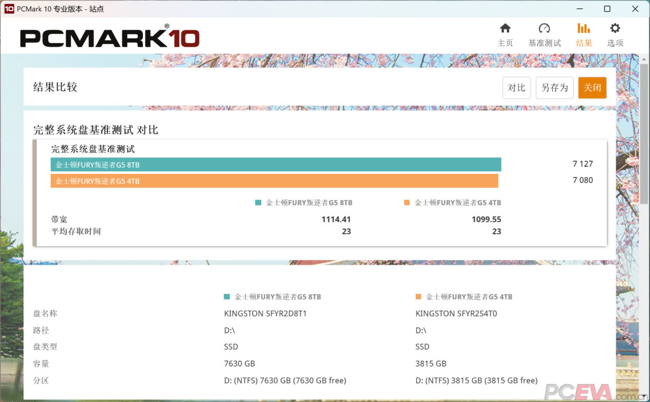基准测试1:理论带宽测试 在英特尔测试平台上,顺序读取速度会比AMD锐龙平台略低,但也能达到14000 MB/s以上,差距并不大。4K随机读写实测性能2135K/1872K IOPS,对于叛逆者G5这样的超旗舰SSD,测速成绩非常容易受到测试平台的影响。不过4K单线程随机读取成绩表现还是非常好,达到114.50MB/s。 基准测试2:PCMark 10完整系统盘基准测试 PCMark 10完整系统盘基准针对当代最新固态硬盘的广泛测试,通过记录-回放原理再现SSD对各种不同应用的性能影响。测试项目涵盖系统开机启动、Adobe设计套件应用、Office办公套件应用、图片/ISO文件拷贝复制、多个游戏加载过程等测试内容。 在此之前,PCEVA评测过的消费级SSD的PCMark 10完整系统盘基准测试最佳成绩纪录是由叛逆者G5 4TB保持的7080分。能够超越自己的只有自己:叛逆者G5 8TB将这一纪录刷新为7127分! 基准测试3:3DMark存储基准测试 3DMark存储基准测试涵盖了战地5、使命召唤15:黑色行动4、守望先锋三款游戏的启动加载过程、在运行守望先锋的同时通过OBS记录1080P游戏视频、从EPIC平台安装天外世界、天外世界游戏进度保存以及将Steam游戏反恐精英:全球攻势从移动硬盘拷贝到系统盘的过程,涵盖了PC游戏玩家所能遇到的方方面面。 在此之前,PCEVA评测过的消费级SSD的3DMark存储基准测试最佳成绩纪录是由叛逆者G5 4TB保持的7130分。叛逆者G5 8TB一举将其提升至7418分的新高度! |